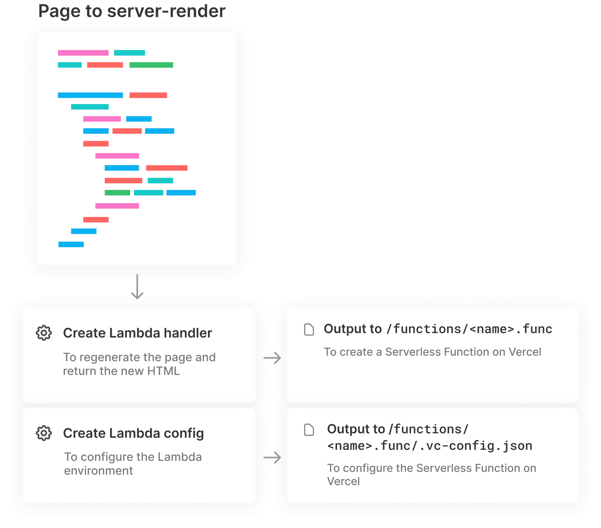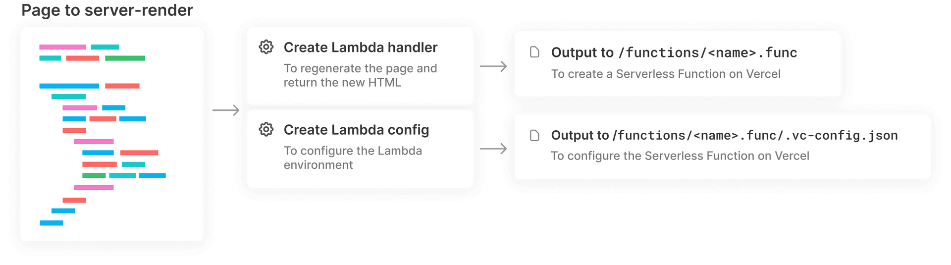 You can see that it’s essentially a subset of the Incremental Static Regeneration code. In this case, we’re only calling the createServerlessFunction method covered in the previous paragraph to create both a lambda (serverless) bundle and a client-side bundle.