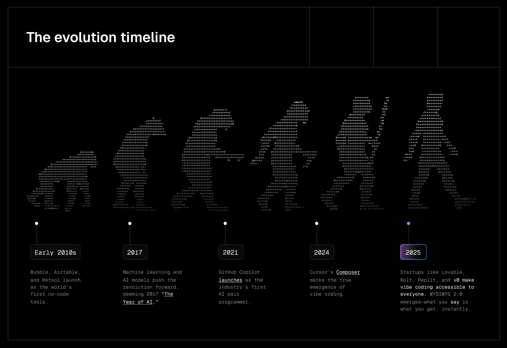Fifteen years ago, no-code tools let people build by dragging and dropping components. This marked the start of “WYSIWYG” (what you see is what you get) software tools, where users could edit content in a visual interface that mirrored their final product.