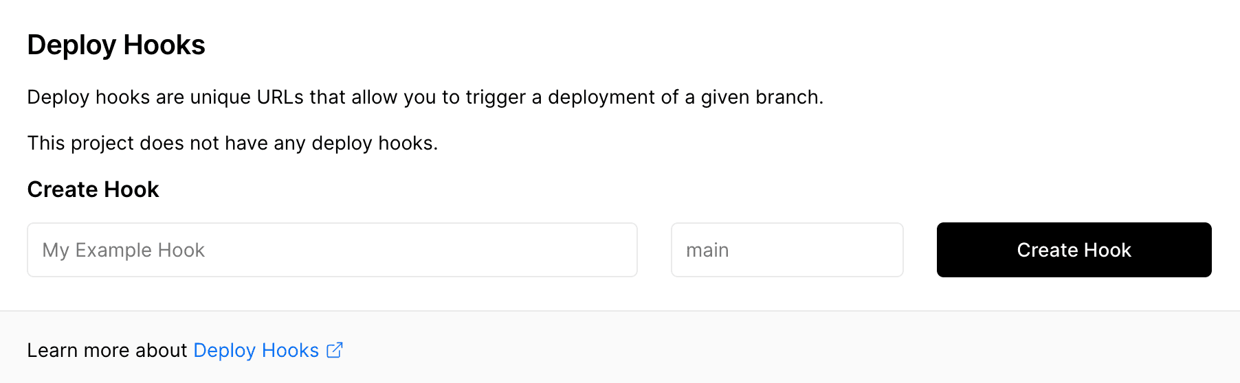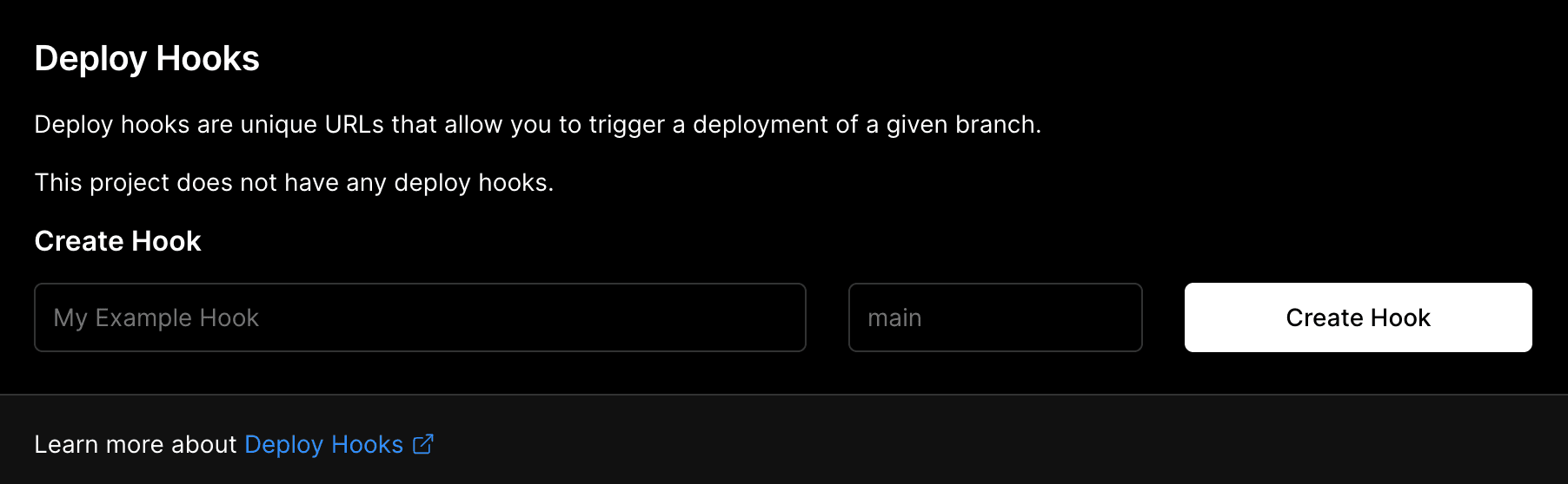 To create a Deploy Hook for your project, make sure your project is connected to a Git repository.