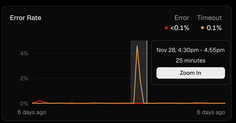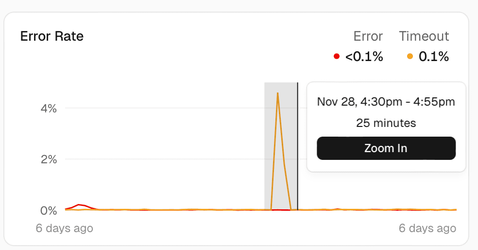 3. Let's investigate our graphs in more detail, for example, Error Rate. Click and drag to select a period of time and press the Zoom In button.