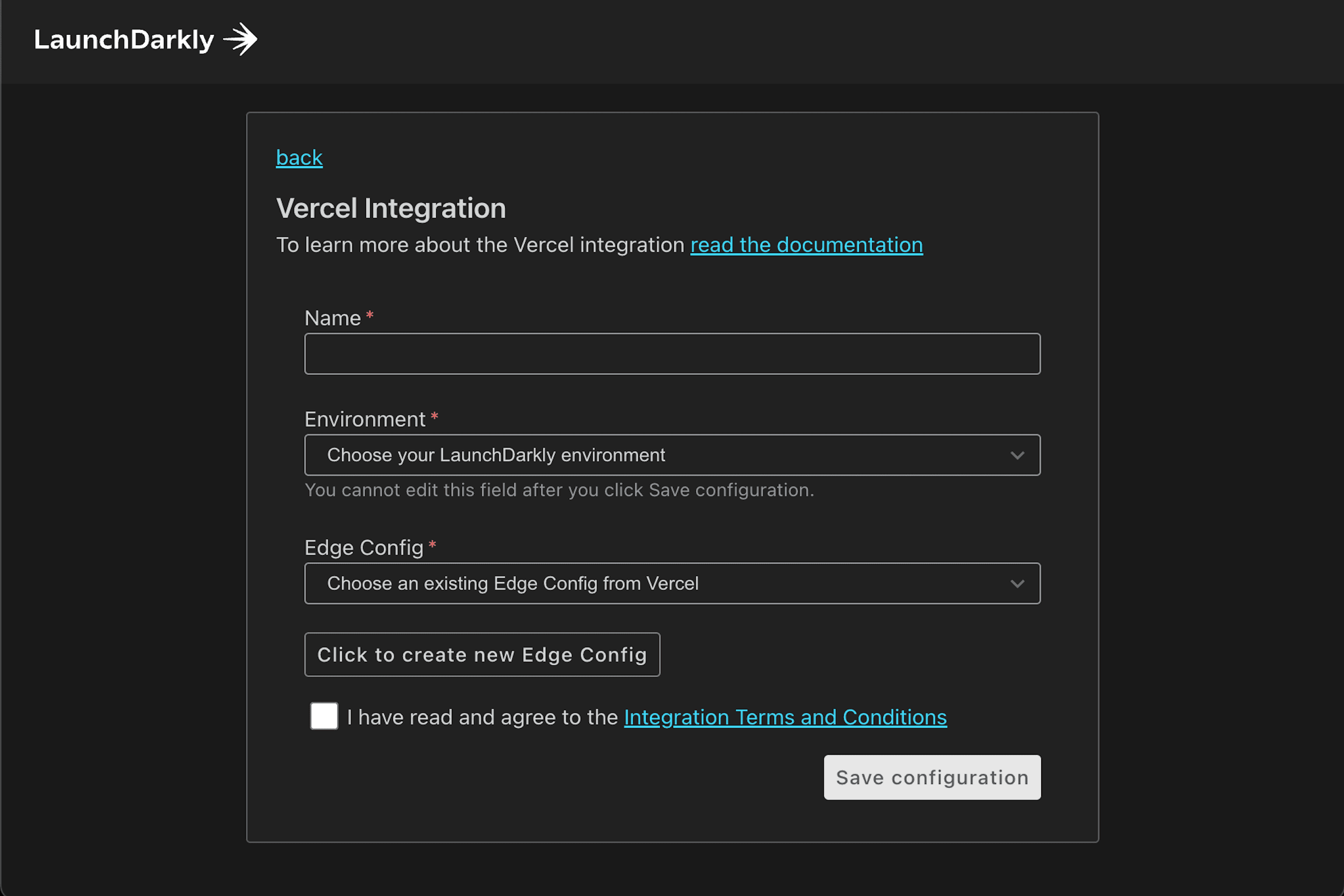 Use this integration to export your LaunchDarkly flag configurations to your Vercel Edge Config. Learn more about the power of Edge Config and read the docs to get started!
