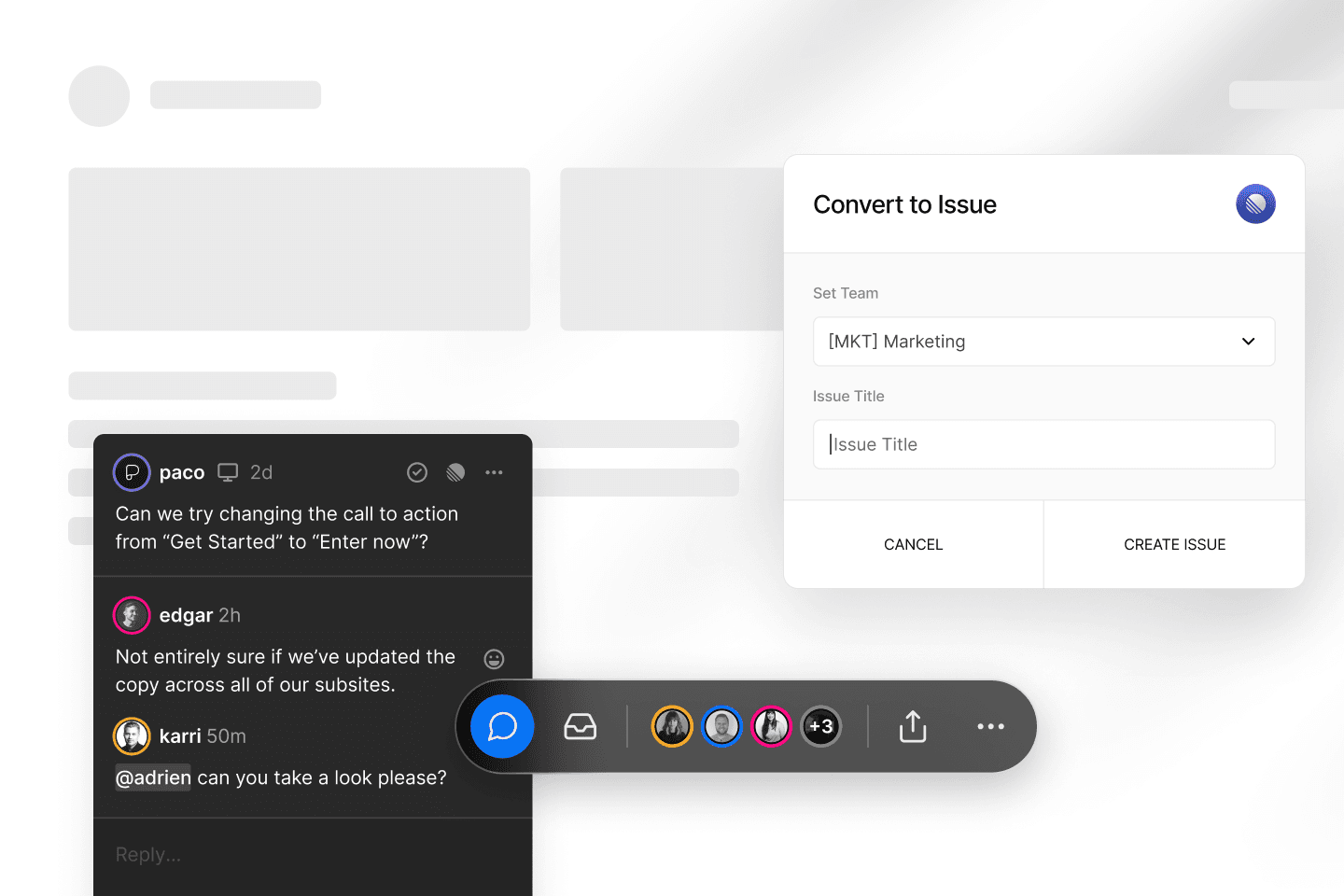 The Vercel Linear Integration allows Vercel users to convert feedback from comments on Preview Deployments to actionable Linear issues. When leaving comments on Vercel Preview Deployments you’ll have the option to ‘Convert to Issue’ which will prompt you to create a ticket that will appear in your Linear board under a selected project. Your comment screenshots and replies will also appear in your ticket.
