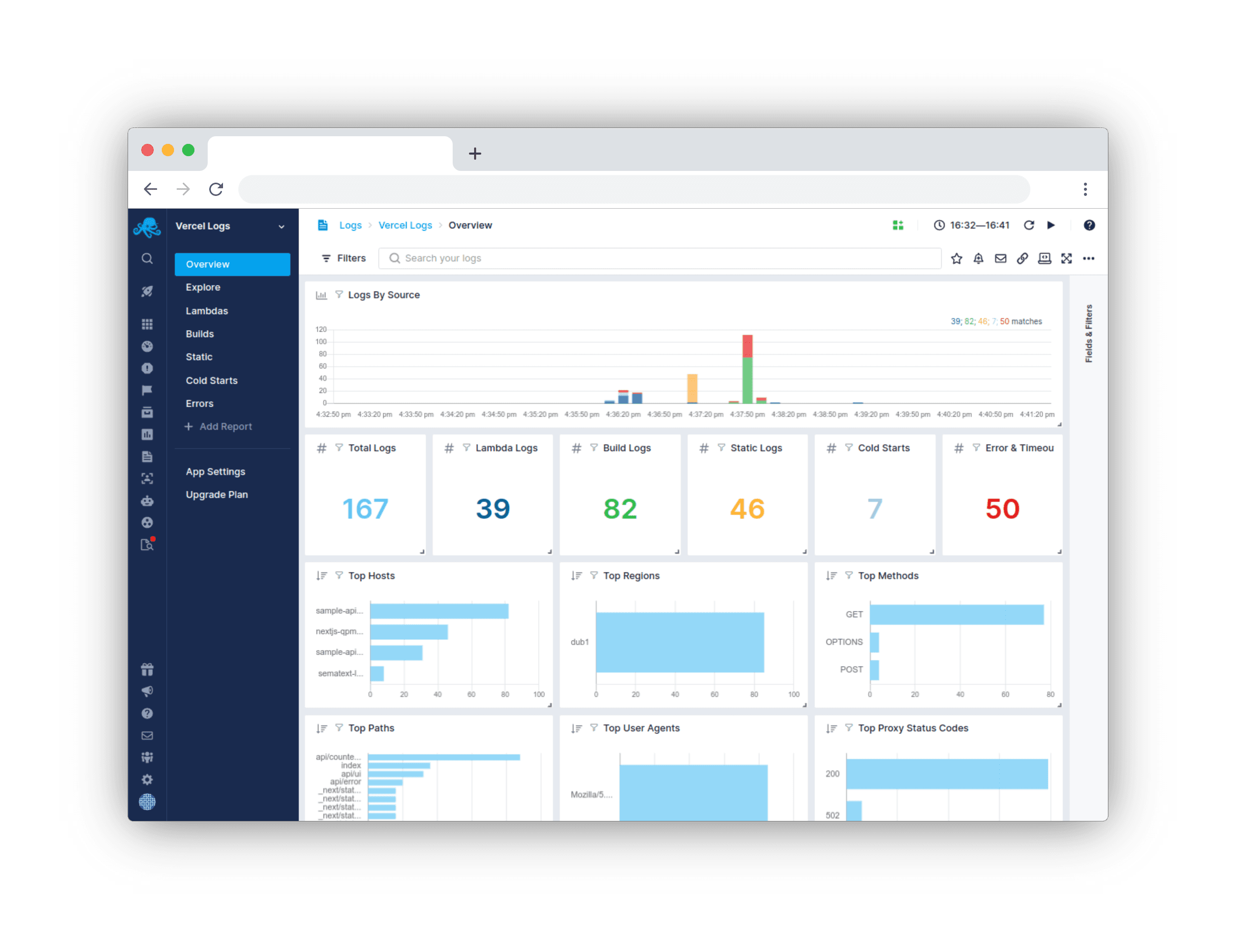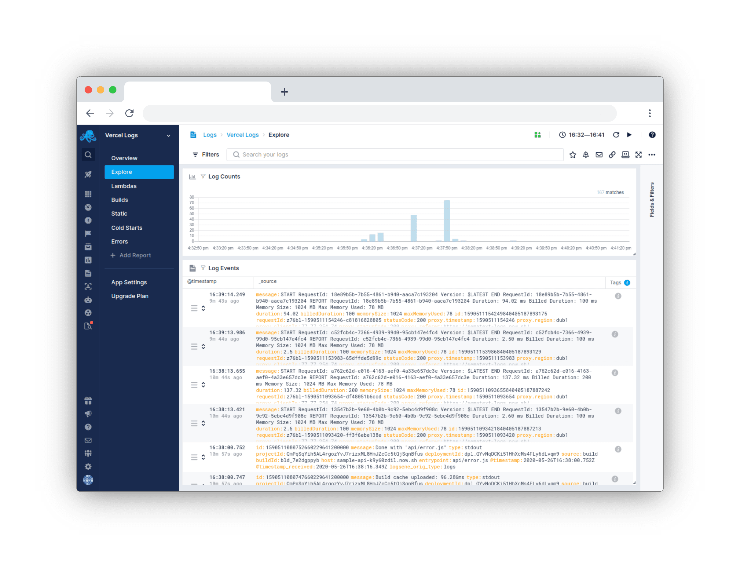 Send logs from your Vercel apps to Sematext for easy debugging and troubleshooting.