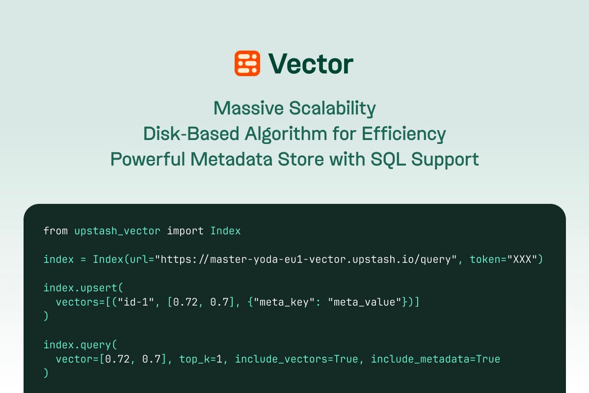 Upstash Vector: Upstash Vector is a serverless vector database designed for working with vector embeddings. It's essential for managing numeric representations of objects (like images, sounds, text) in a multi-dimensional space.